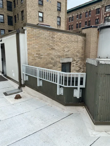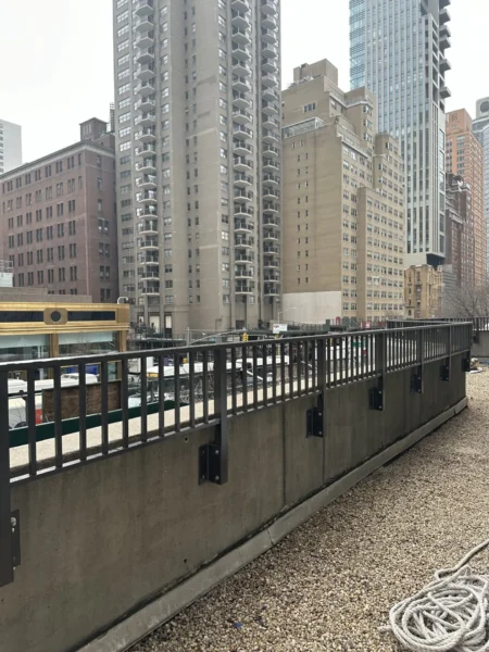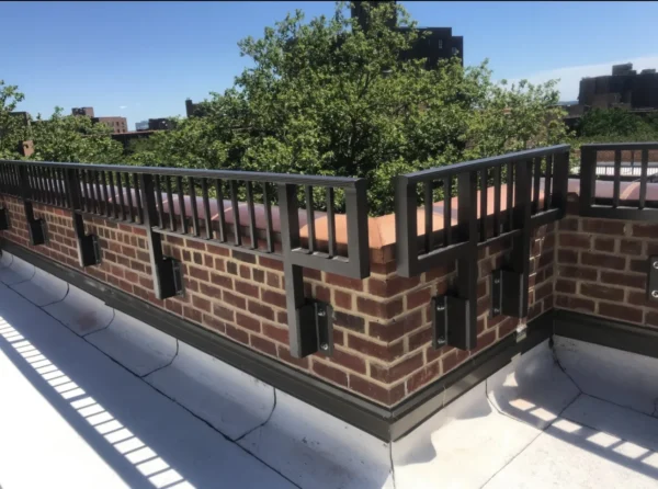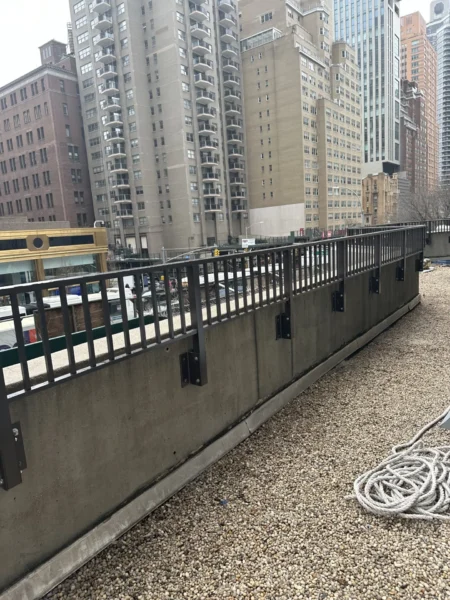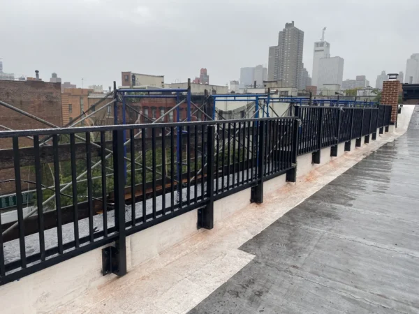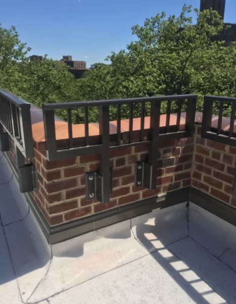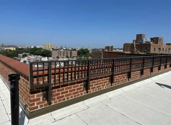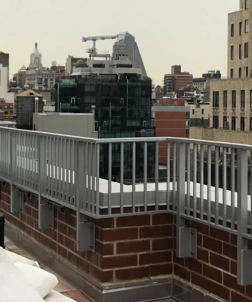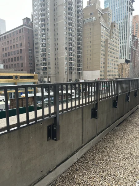 CC Railings’ signature Aluminum Side Mounted Railings are an ideal solution for buildings with parapets around 36 inches tall, designed to meet NYC guidelines requiring a minimum height of 49 inches from the ground. This system is a perfect fit for various areas, including Union County, Manhattan, New York, Queens, NY, and The Bronx, NY. These railings are easy to install, simply requiring a drill into the side parapet, making them a practical option for enhancing security and aesthetics. Built from high-quality materials and treated with a tough powder coating, they endure even the harshest weather across Staten Island and Brooklyn. Each set includes stamped shop drawings and calculations, ensuring every weld is supported by our NYC Licensed engineers, guaranteeing both safety and durability.